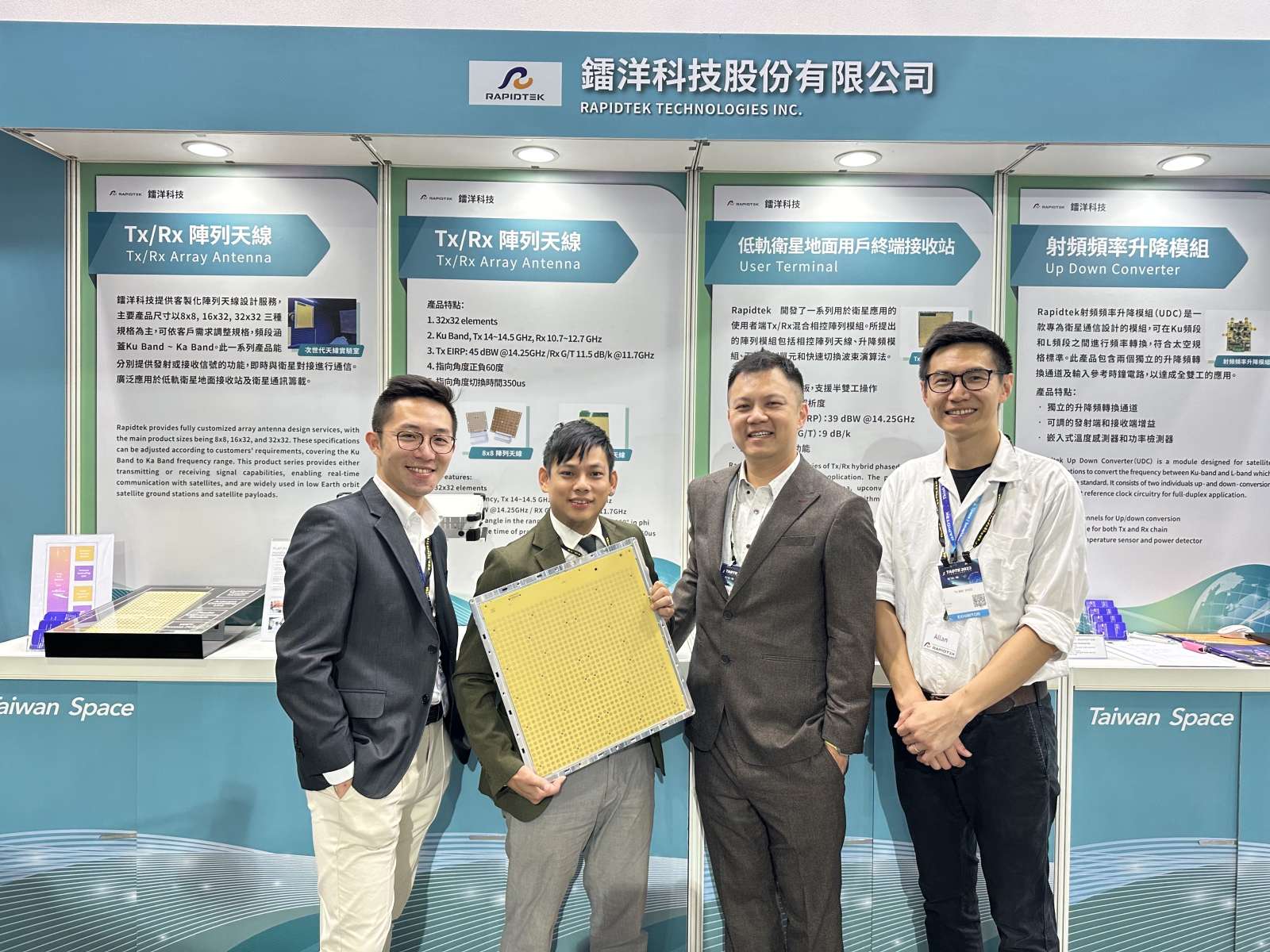 鐳洋除了展出可應用於地面接收站、立方衛星及通訊酬載系統的相位陣列天線外,更提供創新改良的升降頻模組2.0,能有效應用於衛星常用頻段,大大提升產品的應用範圍,目前此產品已獲國外客戶認可。